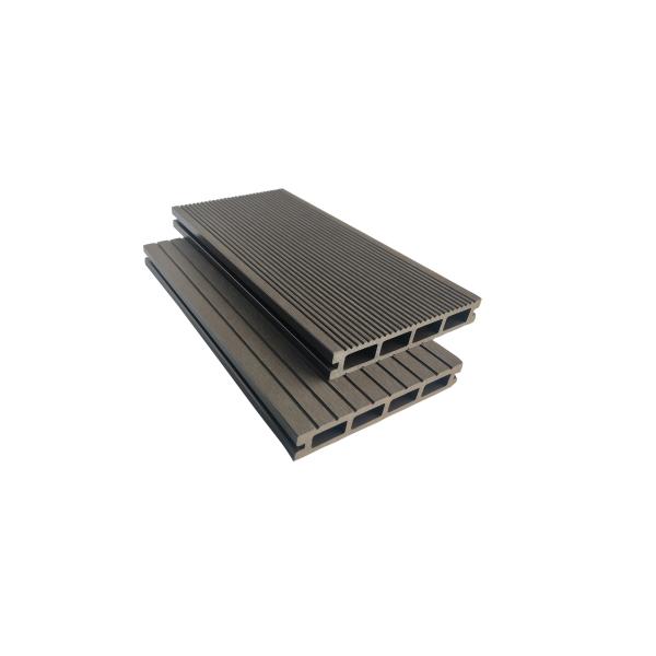 Our hollow core composite decking boards have a lightweight honeycomb construction and are reversible with narrow spaced grooves on both sides. The grooves provide a robust anti-slip walking surface, are easy to clean, and require very little maintenance.